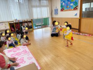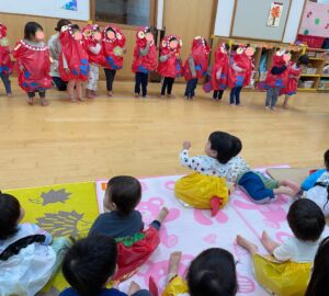 先日行った「発表会」の見せ合いっこをぱんだ組・りす組・ひよこ組で行いました。